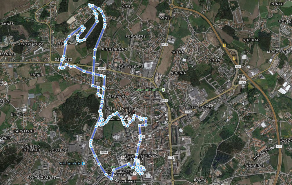 O percurso em circuito, no perimetro urbano de V.N. de Famalicão, com +/-5km;